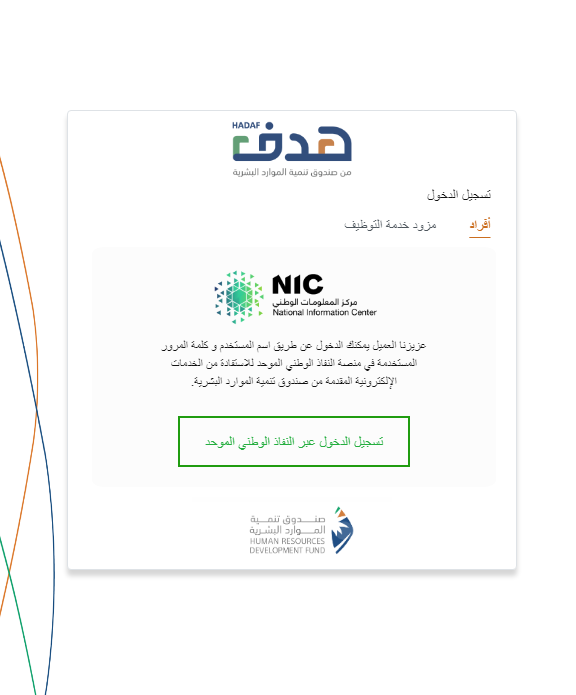 - تسجيل الدخول بواسطة النفاذ الوطني.