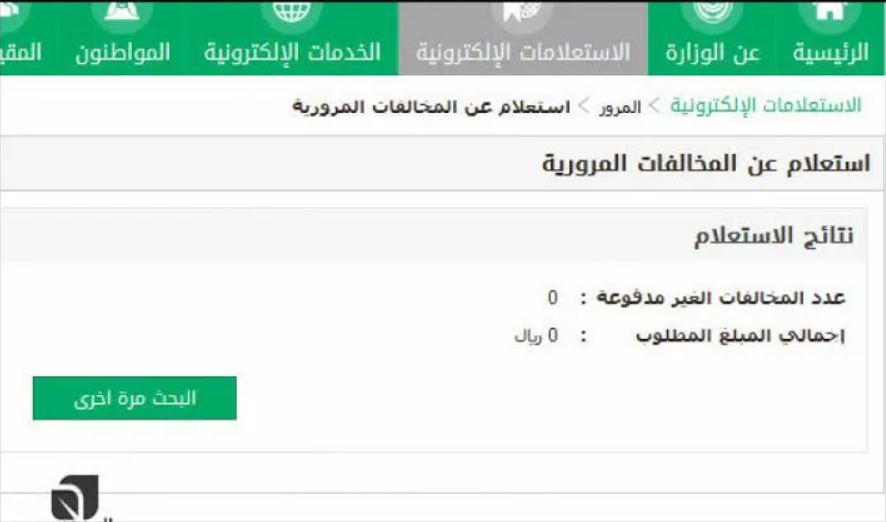 - بعد تسجيل رقم اللوحة، اضغط على خيار "استعلام"، وهذا سيقوم بجلب المعلومات المتعلقة بالمخالفات المرورية وقيمتها إذا كانت موجودة.
