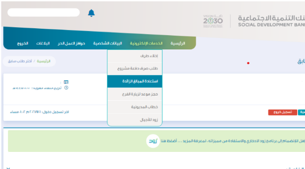 - اختر خدمة استعادة المبالغ الزائدة من الخدمات الإلكترونية.