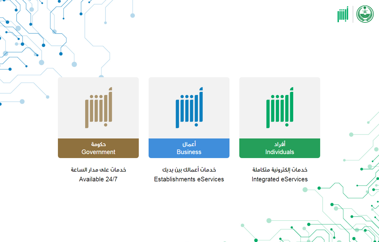 - قم بالدخول بشكل مباشر إلى منصة أبشر الإلكترونية "من هنا".