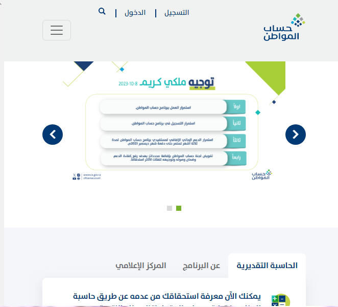 - قم بالتوجه إلى الموقع الرسمي لبرنامج حساب المواطن.