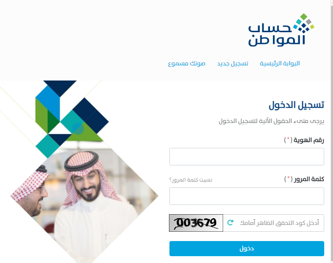 - انقر على تسجيل الدخول وقم بتعبئة البيانات المطلوبة من كلمة المرور ورقم الهوية الوطنية ورمز التحقق المرئي لإتمام عملية الدخول.