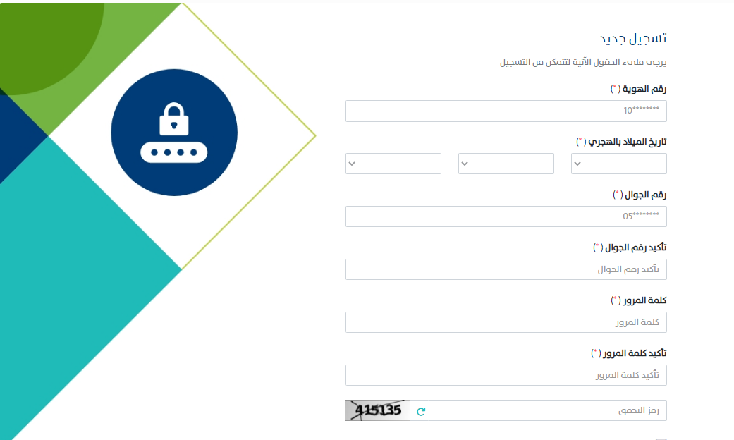 - ابدأ في تسجيل البيانات الخاصة بك من رقم الهوية الرقمية ورقم الهاتف الجوال وتاريخ الميلاد.