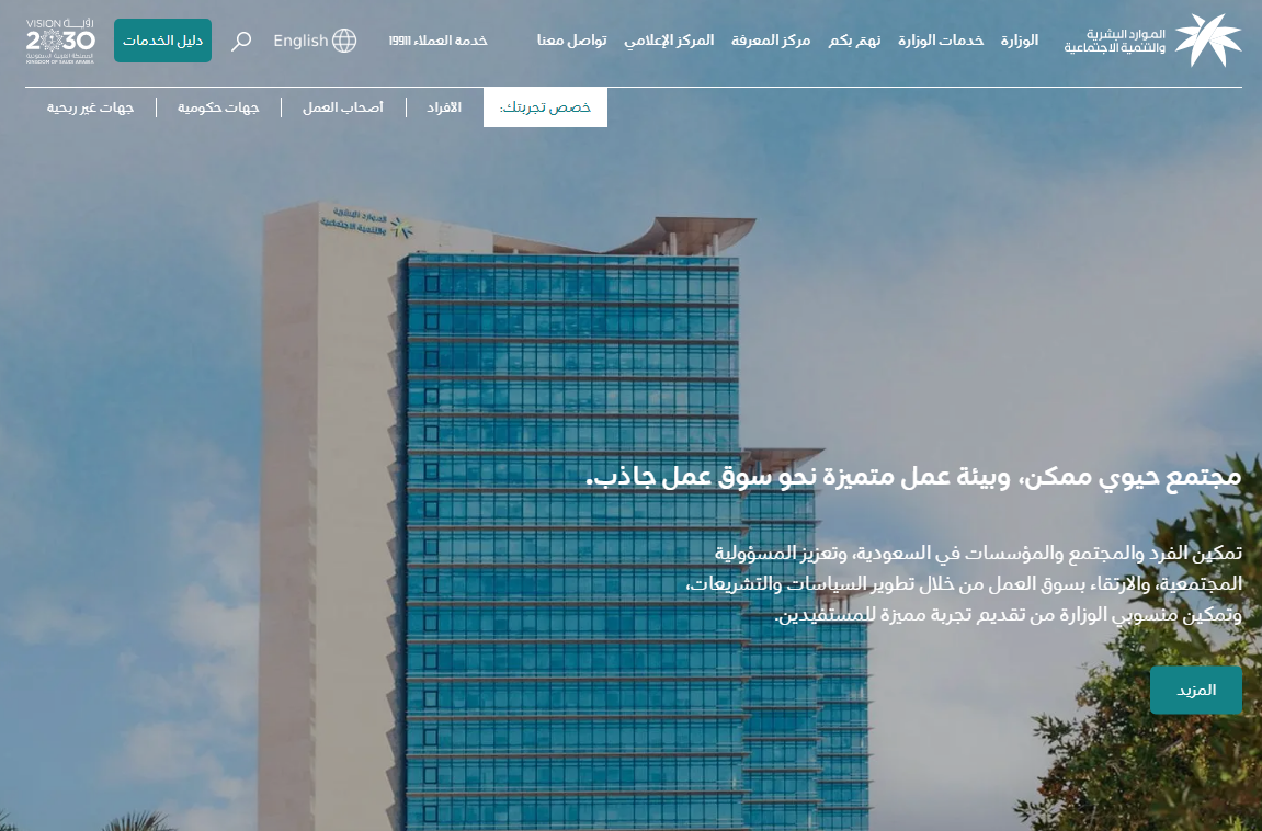 - قم بالدخول بشكل مباشر إلى موقع وزارة الموارد البشرية والتنمية الاجتماعية "من هنا".