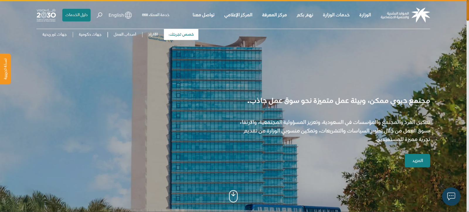 - أولاً، يتم التوجه إلى الموقع الرسمي لوزارة الموارد البشرية.