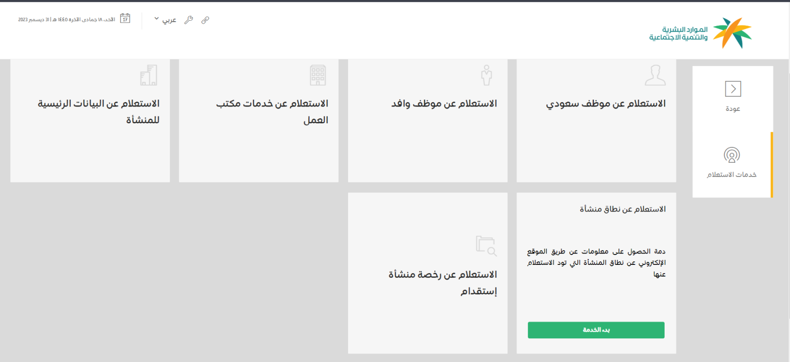 - بعد تسجيل الدخول، قم النقر على خدمات الاستعلام.