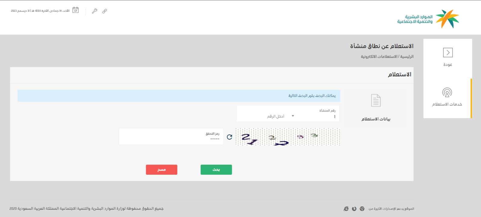الاستعلام عن نطاق المؤسسة برقم الإقامة