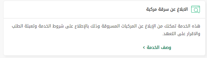 - ثم حدد خدمة الإبلاغ عن سرقة مركبة.
