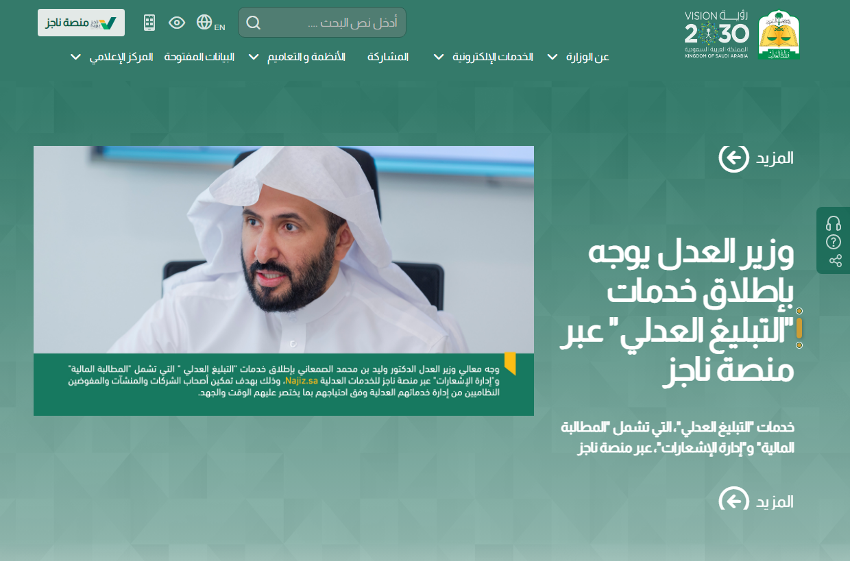 - قم بالدخول بشكل مباشر إلى الموقع الإلكتروني الرسمي لوزارة العدل "من هنا".