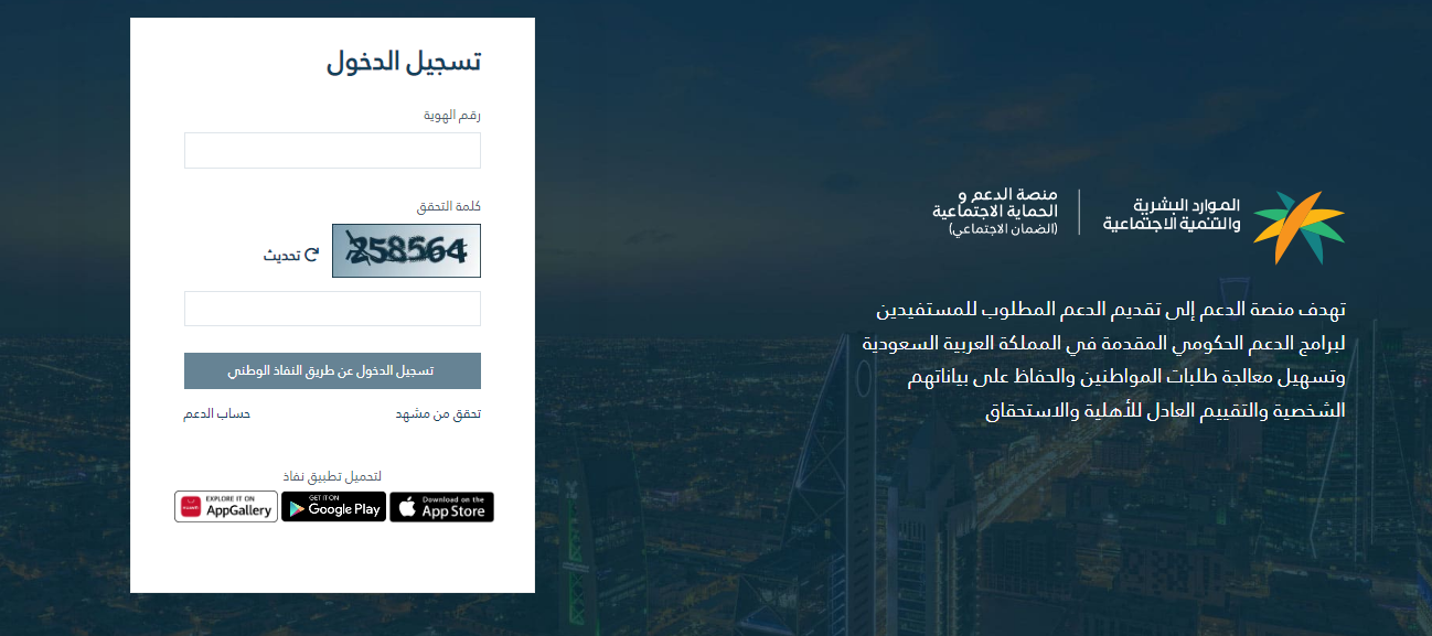 - افتح رابط منصة الدعم والحماية الاجتماعية.