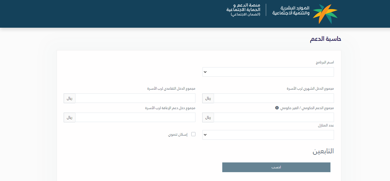 من الخدمات الإلكترونية التي يمكن للمواطنين السعوديين الاستعلام عن راتب الضمان الاجتماعي المطور في حالة القبول خلالها هي الحاسبة التي تُستخدم كالتالي: