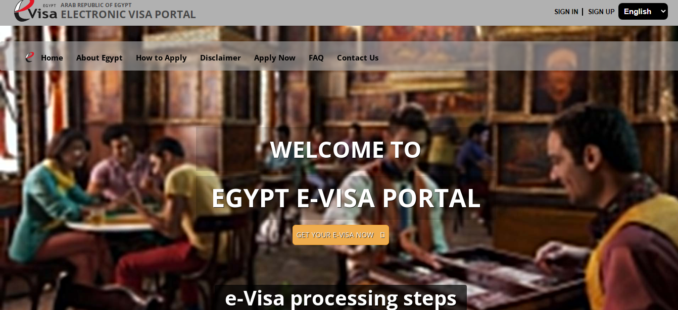 - قم بالتوجه إلى الموقع الرسمي الخاص بتأشيرة مصر الإلكترونية.