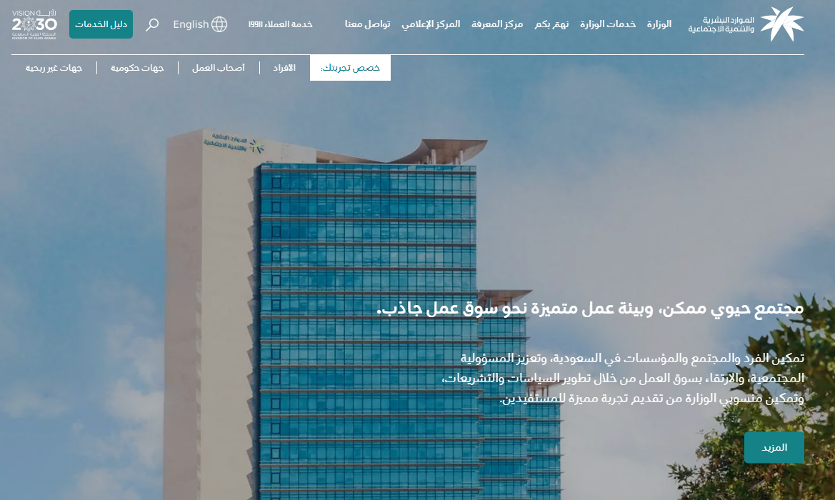 - قم بالدخول بشكل مباشر إلى موقع وزارة الموارد البشرية والتنمية الاجتماعية "من هنا".