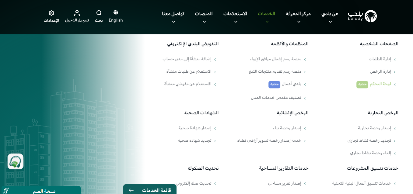 - تحديد خدمات رخص الأنشطة التجارية.