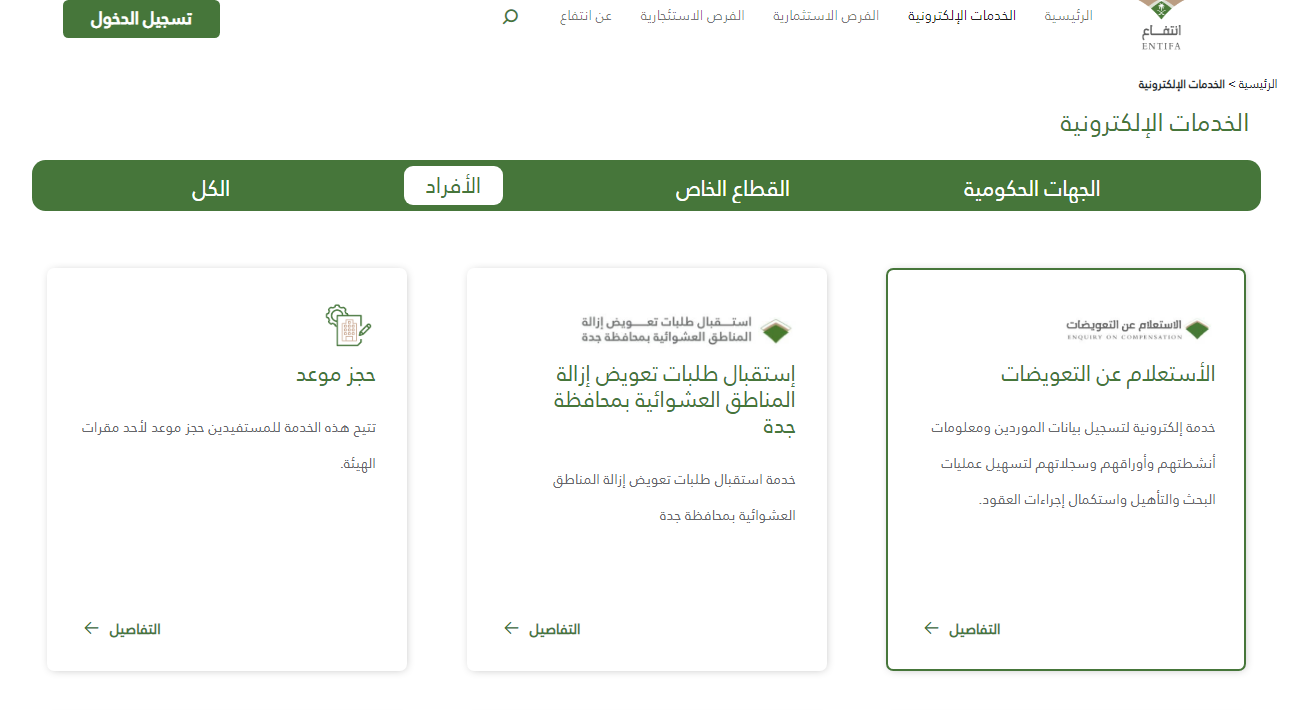 خطوات الاستعلام عن التعويضات عبر منصة انتفاع entifa.sa