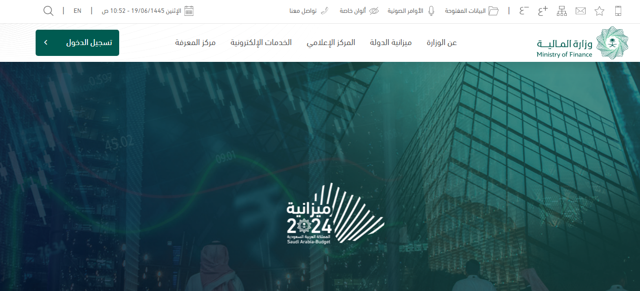 - قم بالتوجه إلى الموقع الرسمي الخاص بوزارة المالية السعودية.