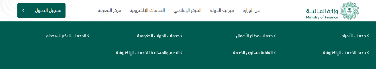 خدمات موقع وزارة المالية السعودية