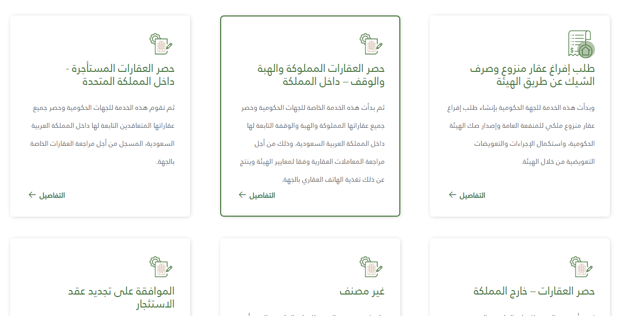 - بعد ذلك العثور على خدمة حصر العقارات المملوكة والوقف، والضغط على "التفاصيل".