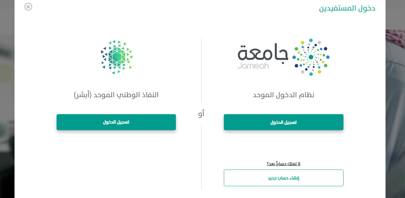 - تسجيل الدخول بحساب الجامعة أو حساب النفاذ الوطني الموحد.