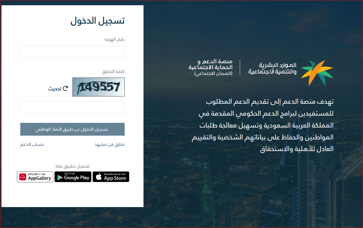- قم بالدخول إلى منصة الضمان الاجتماعي المطور الرسمية.