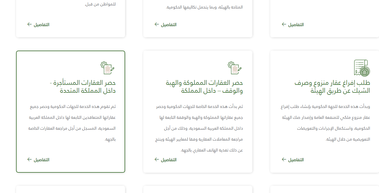 - تحديد خدمة "حصر العقارات المستأجرة – داخل المملكة"، ثم النقر على زر "التفاصيل".