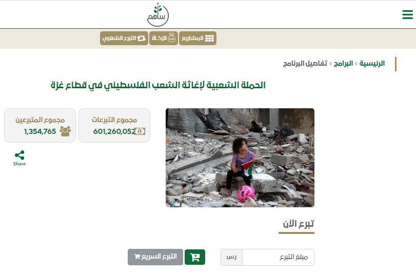 مبادرة لإغاثة الفلسطينيين في غزة من جراء الحرب .. منصة ساهم 2024