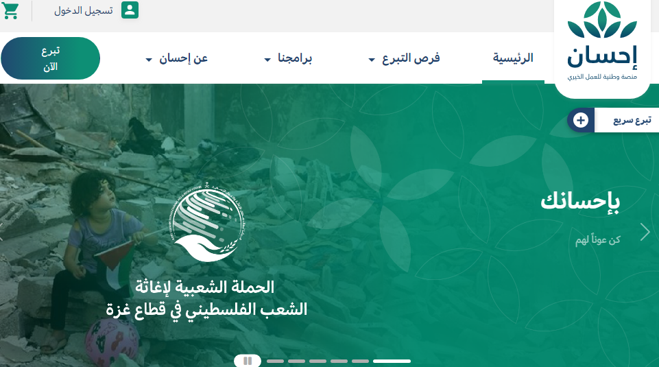 - يتم زيارة الموقع الرسمي لمنصة إحسان الخيرية.