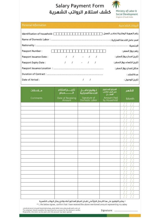 - يشترط أن يحتوي النموذج على توقيعات كلًا من صاحب العمل والعامل.