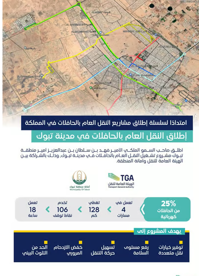 مسارات مشروع حافلات الطاقة النظيفة في تبوك