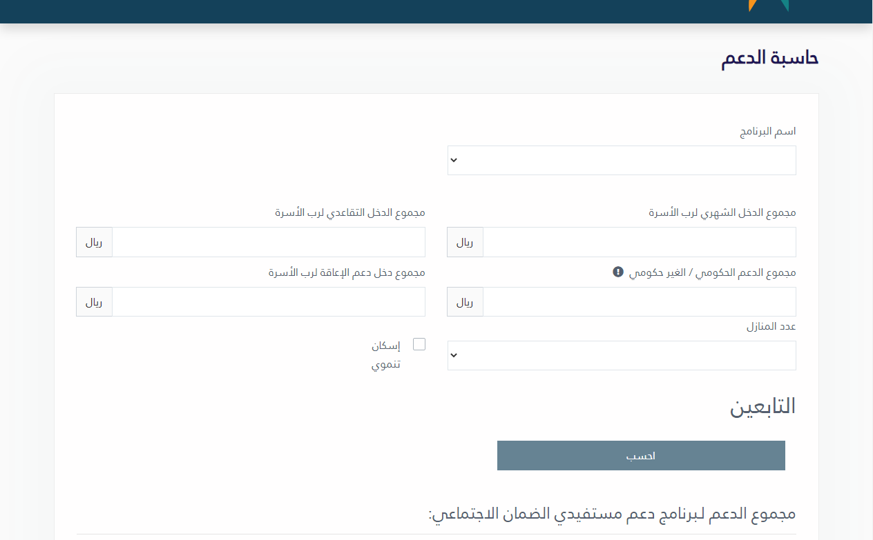 - أدخل البيانات المطلوبة من مبلغ الدخل الشهري لرب الأسرة، وقيمة دخل التابعين، وعدد المنازل.