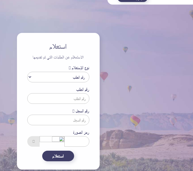 - سجل بيانات الاستعلام المطلوبة (رقم الطلب، ورقم السجل، والرمز المرئي).