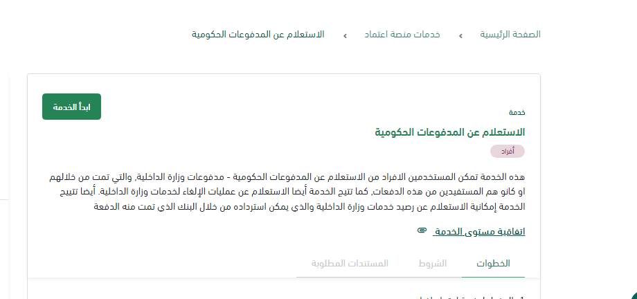 - اختر الاستعلام عن المدفوعات الحكومية.