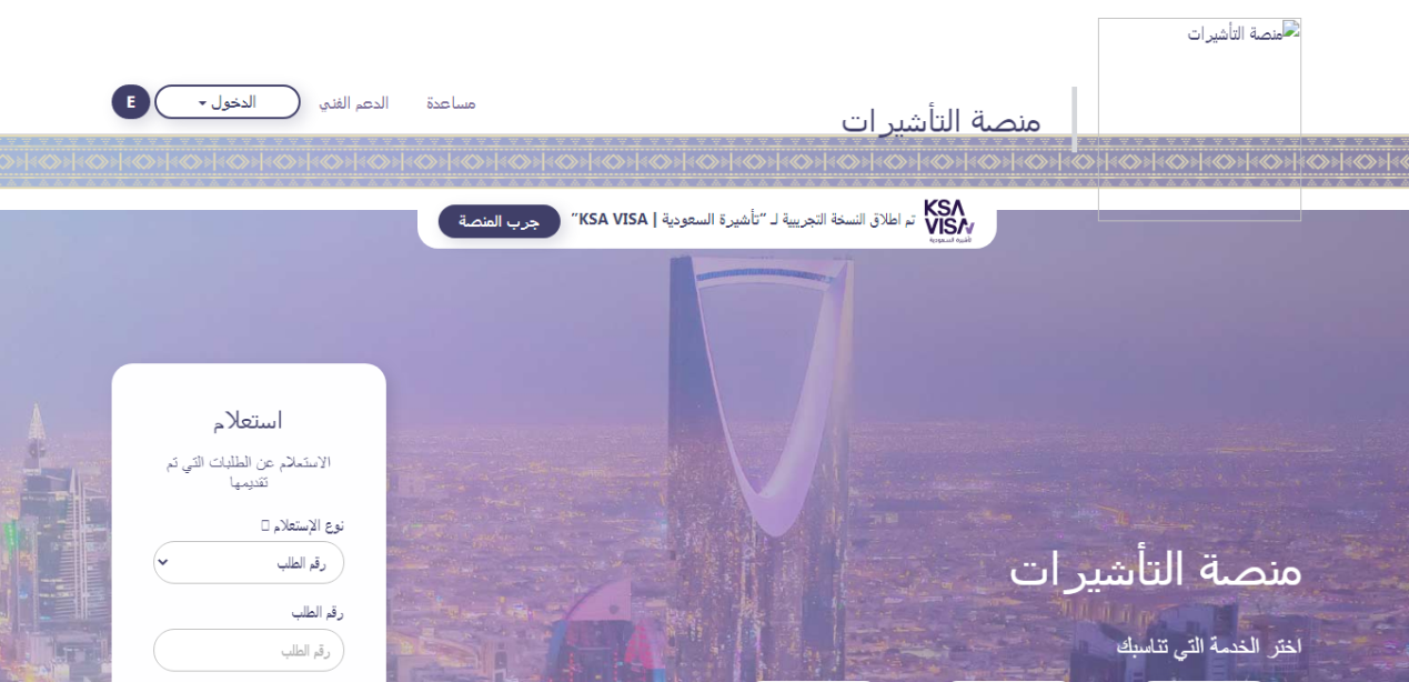 - الدخول إلى منصة التأشيرات.