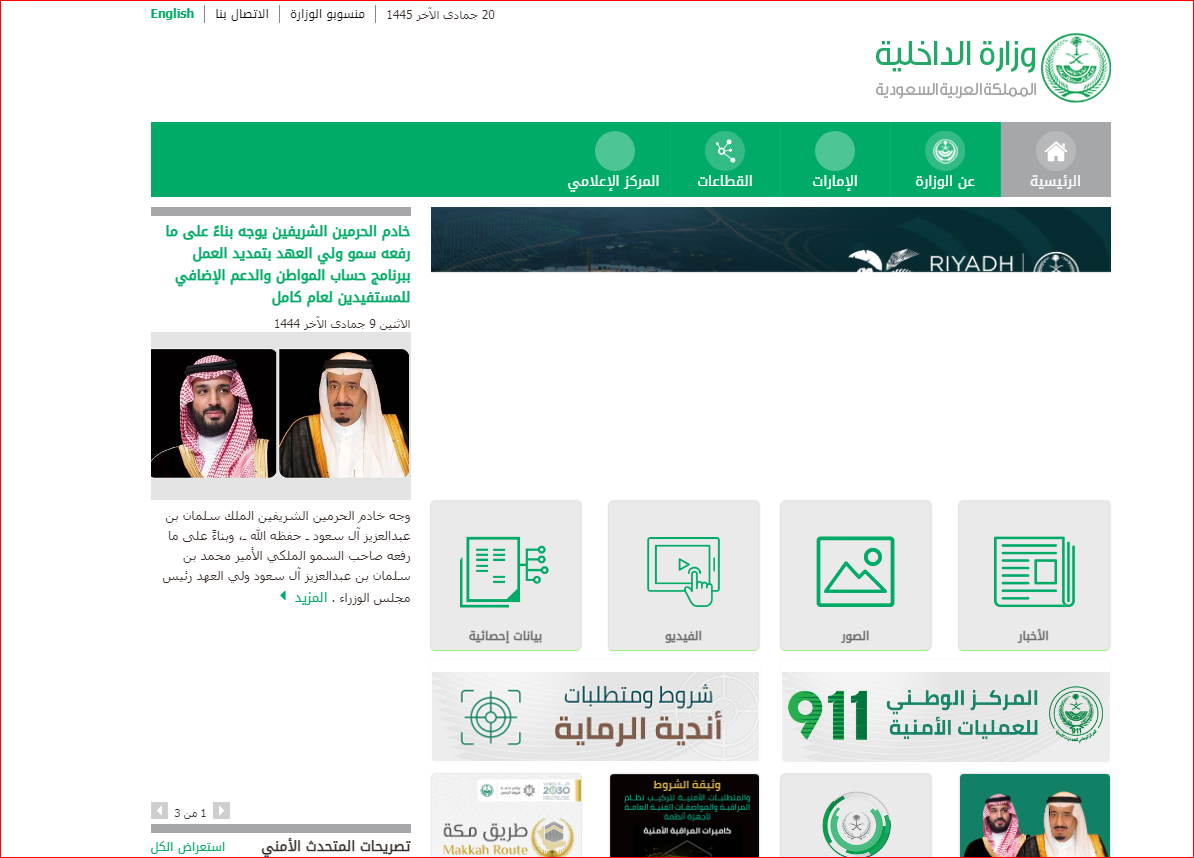 - قم بالدخول إلى الموقع الرسمي لوزارة الداخلية السعودية.