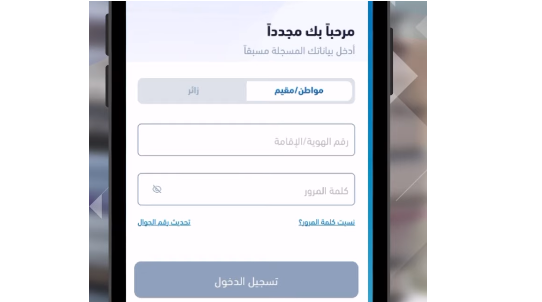 - سجال بيانات الدخول (رقم الهوية، ورقم الإقامة، وكلمة المرور).