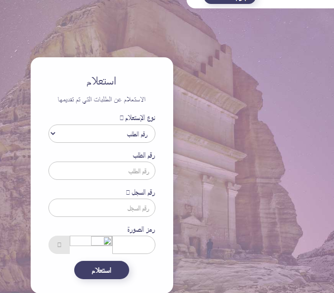 - املأ بيانات الاستعلام الآتية: (رقم الطلب، ورقم السجل).