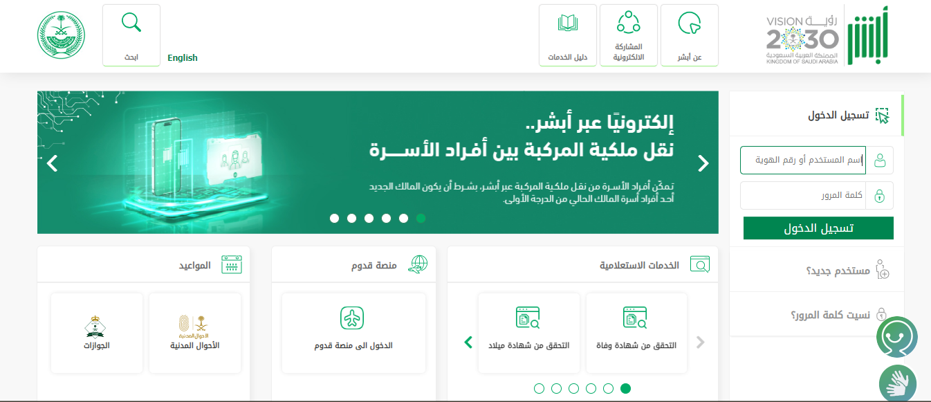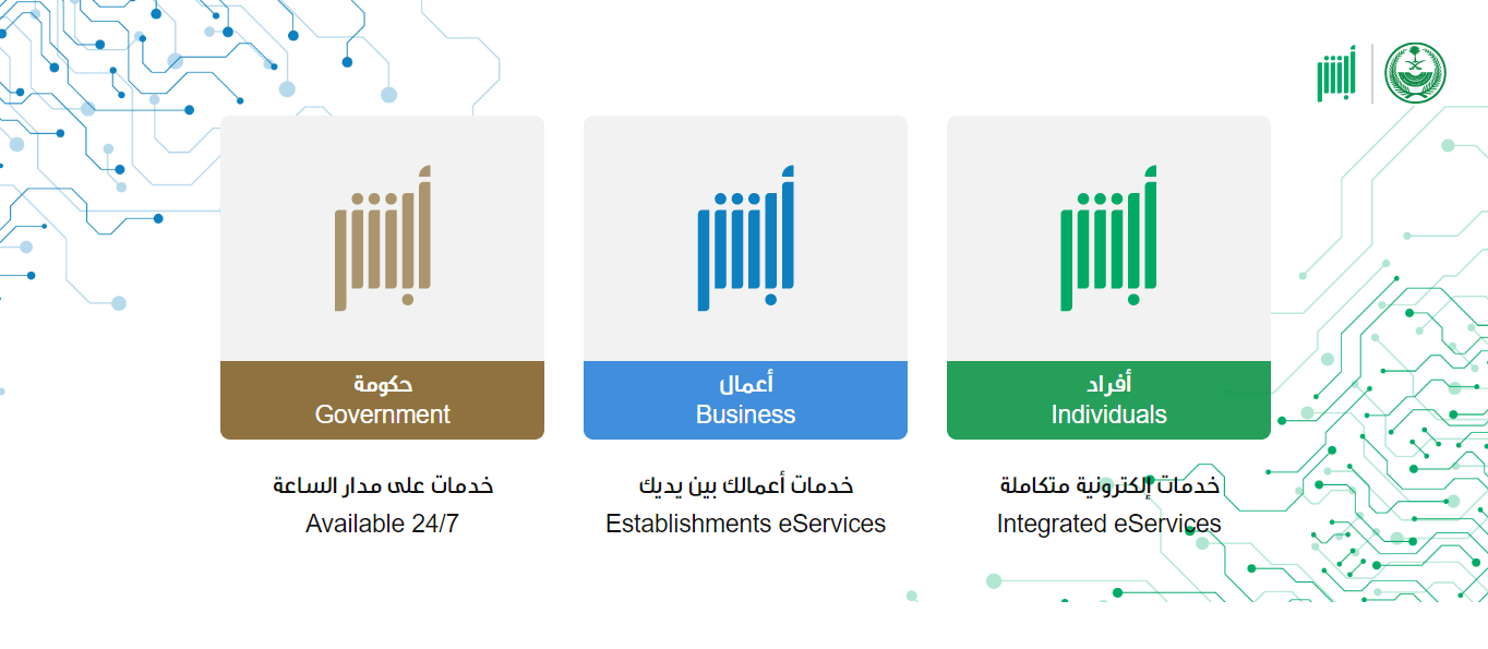 - التوجه إلى منصة أبشر الرقمية التابعة لوزارة الداخلية.