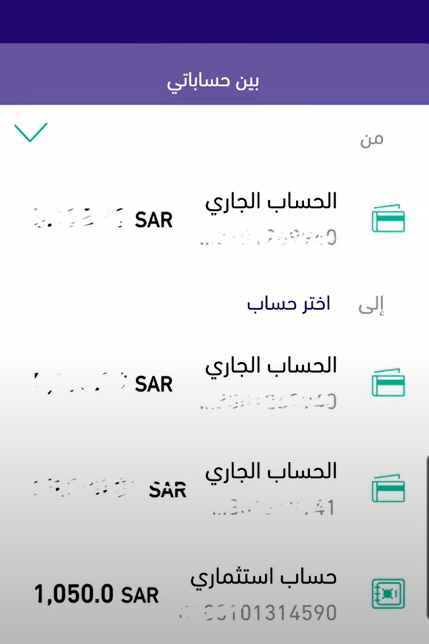 - تحديد التحويل بين حساباتي.