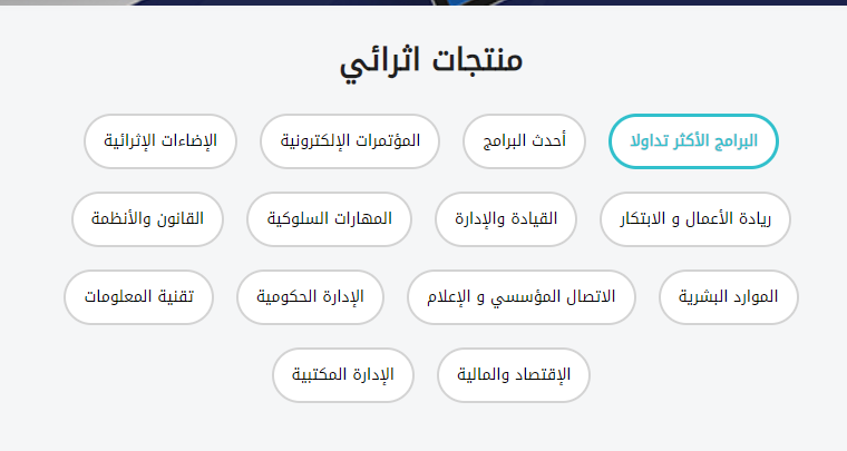 - يُمكن من خلال هذه المنصة التحكم في المجالات المصنفة للبرامج التدريبية.