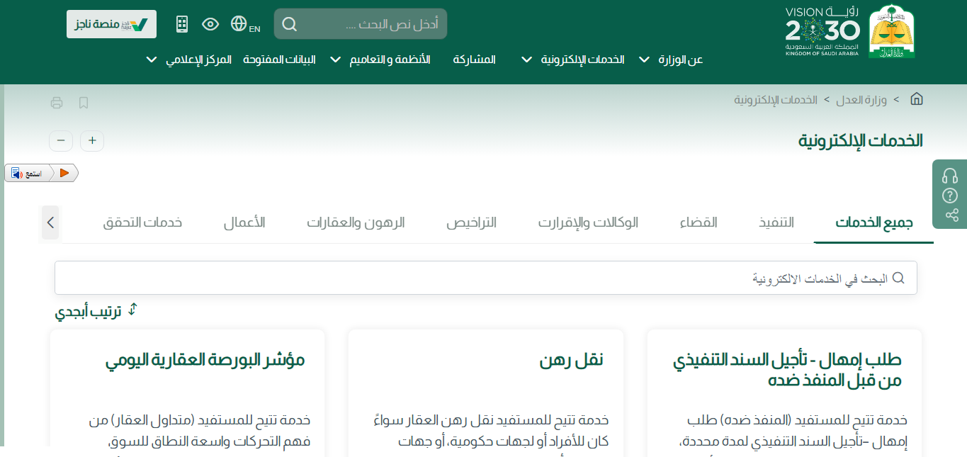 - التوجه إلى صفحة النفاذ الوطني وزارة العدل.