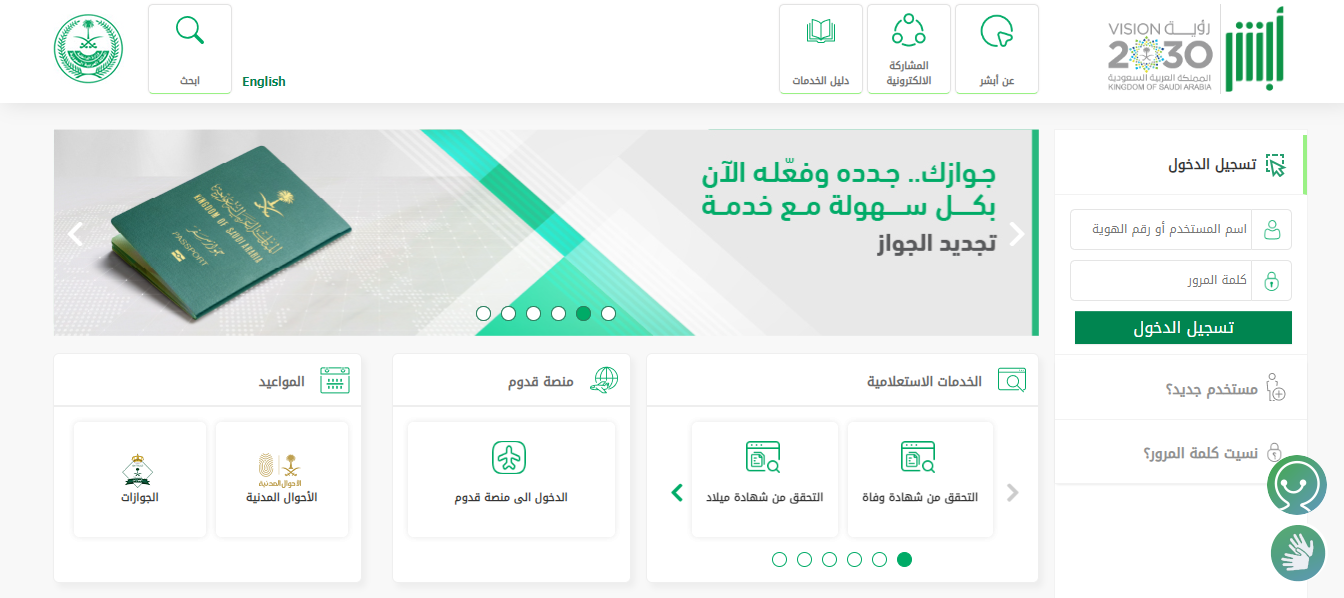 - التوجه إلى موقع أبشر التابع لوزارة الداخلية.