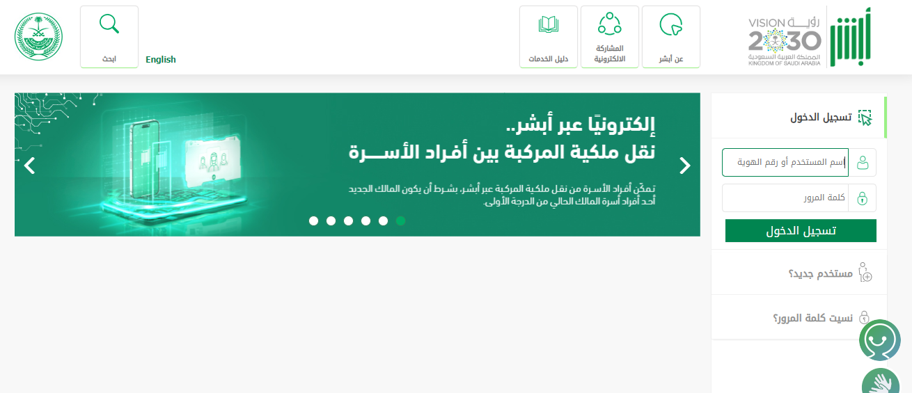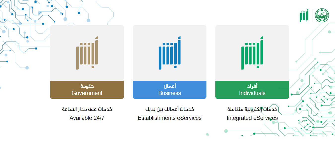- التوجه إلى منصة أبشر الرقمية.