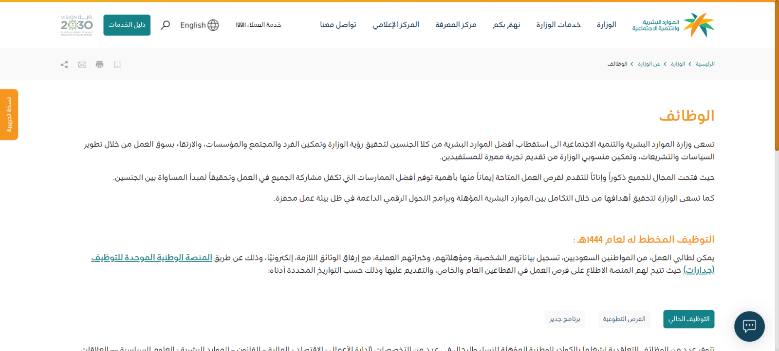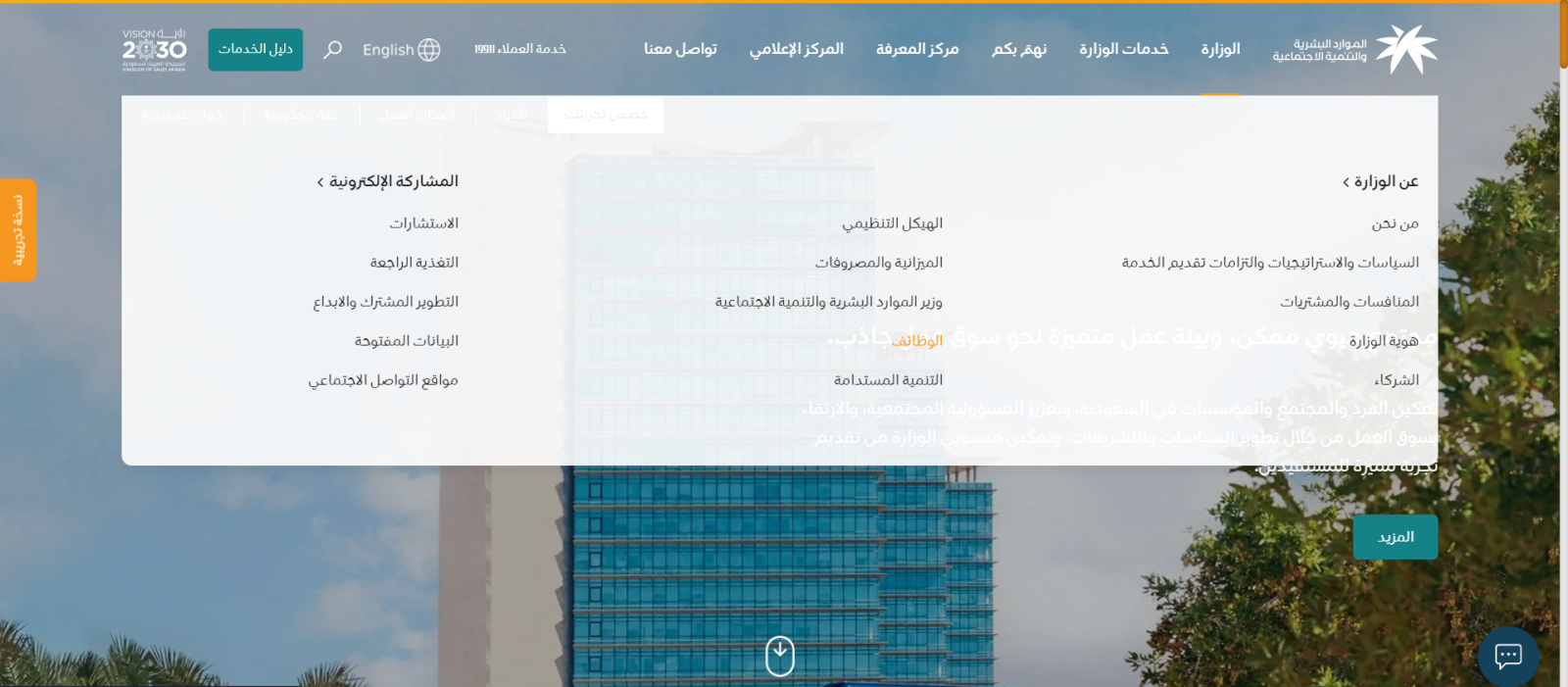 - من علامة تبويب "الوزارة" في الأعلى قم بالنقر على تبويب "الوظائف".