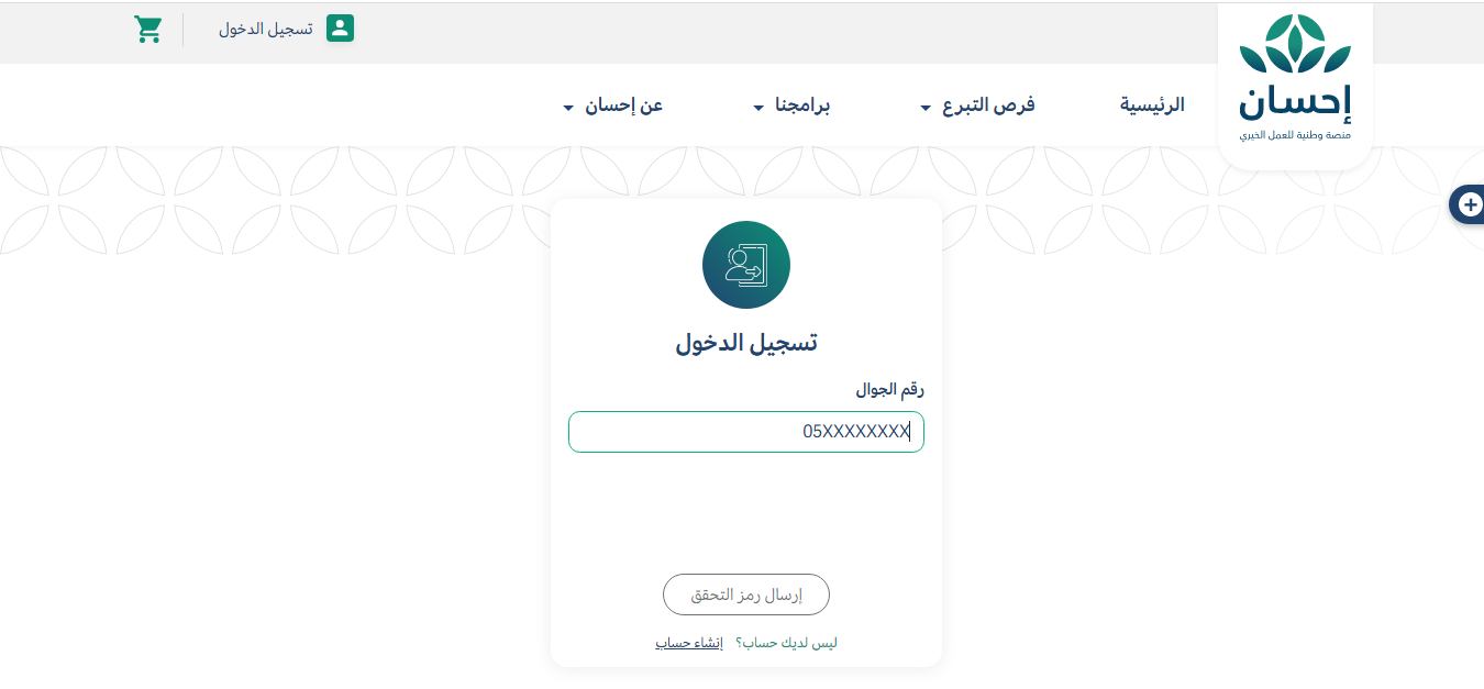 - الدخول إلى منصة إحسان الخيرية.