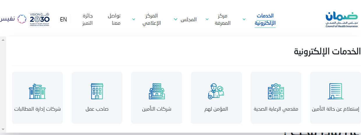 - التوجه إلى الموقع الرسمي مجلس الضمان الصحي.