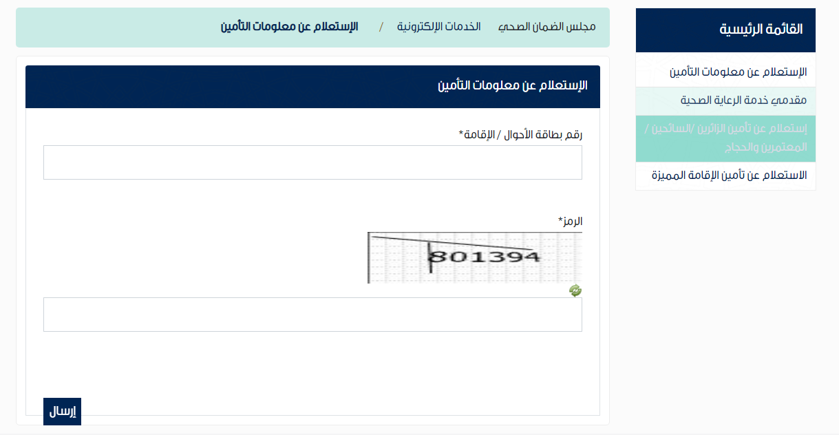 - الذهاب إلى خدمات "استعلام عن حالة التأمين".