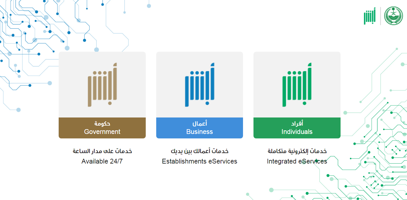 - التوجه إلى منصة أبشر الرقمية.