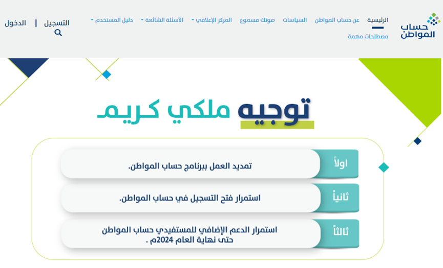 - يقوم المواطن بزيارة موقع حساب المواطن.