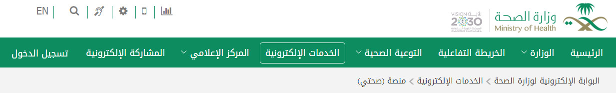 - قم بالدخول بشكل مباشر إلى الموقع الإلكتروني الرسمي لمنصة صحتي "من هنا".