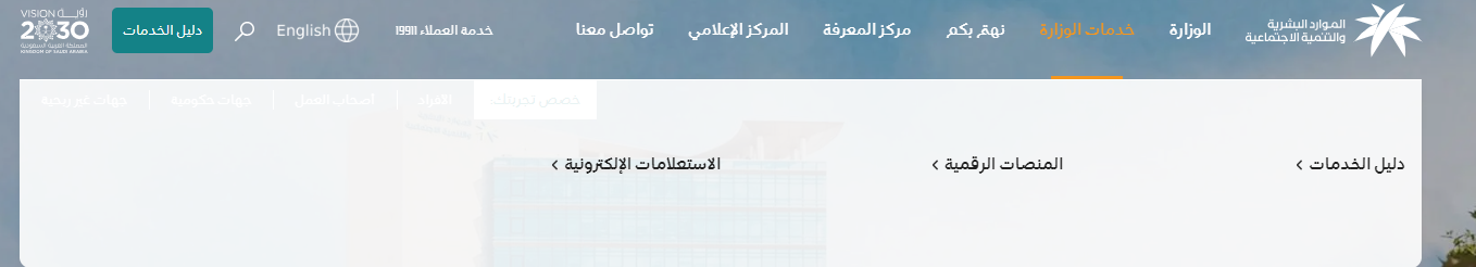 - انقر على الخدمات الوزارة الإلكترونية الموجودة أعلى الصحفة الرئيسية.